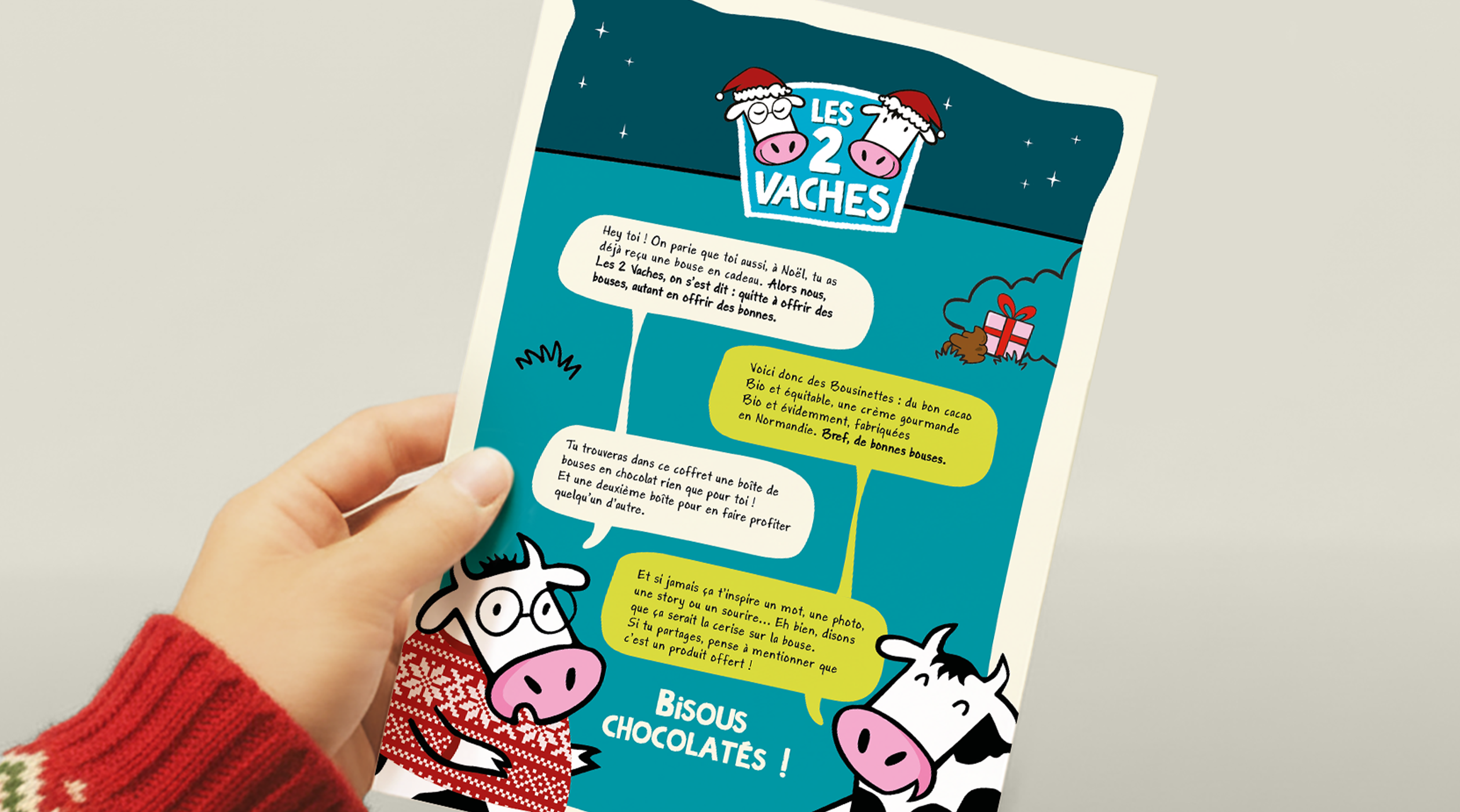 Comment prendre la parole et marquer le coup quand on a pas communiqué depuis 6 mois ? Et comment prendre le contrepied pendant la période de fin d’année où tout le monde prends la parole ? Nous avons créé une activation mettant en avant l’esprit décalé de la marque en envoyant un coffret de bousinettes normandes à une sélection d’influenceurs. Depuis la création de l’opération, en passant par les supports prints et le brief au chocolatier jusqu’à l’envoi des colis, nous avons géré toute cette opération en interne.